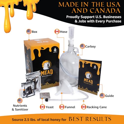 Click for More Images All-in-One Mead Kit – This mead making kits come with everything you’ll need to brew honey mead including yeast, 1-gallon glass carboy, airlock, rubber stopper, racking cane and tip, transfer tubing, sanitizer, and...
