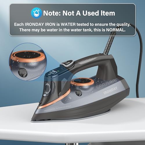 Click for More Images [Quality Tested] Each IRONDAY steam iron is WATER TESTED before leaving the factory to ensure the quality and safety of the product, so some water may remain in the water tank, which is NOMAL for the pre-testing...