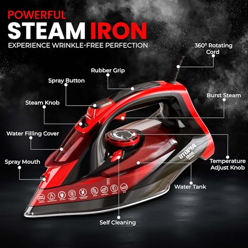 Click for More Images Steam Iron - It’s a steam iron catering to all the ironing needs. The iron is having a water tank, along with a 360-degree swivel cord and a nonstick soleplate for easy and smooth pressing.Lightweight & Durable - Steam...