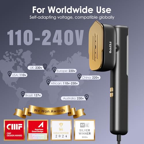 Click for More Images Plug & Play Dual Voltage: Our travel steamer for clothes supports global voltage (100V-240V) with intelligent dual voltage technology, No manual switch, perfect for travel without voltage compatibility concerns.Efficient...