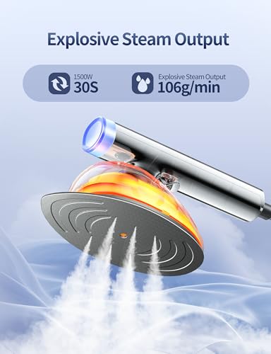 Click for More Images [15s Fast Heating]:The 1500W heating system delivers even heat distribution and reaches optimal temperature in just 15 seconds for efficient wrinkle removal.[Powerful Burst of Steam + Spray]:Features burst steam and...