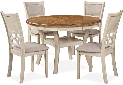 Click for More Images Quality Dining Room Set: New Classic Furniture Wood Dining Table and Dining Chairs crafted from Mindi Wood Veneers and Solid Rubber Wood for High-Quality, Long-Lasting Furniture.Farmhouse Dining Table for 4: Kitchen Table...
