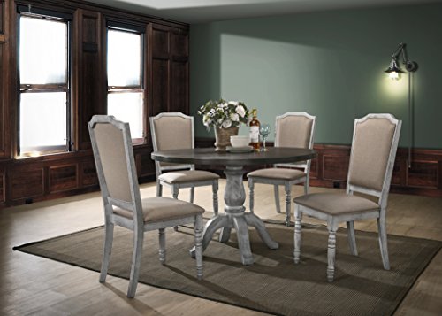 Click for More Images Durable hardwood construction in natural-and-ash Finish, Sturdy turned legs. The Set features A distressed undertone. Set includes a table and four chairs.A simple yet elegant Transitional piece. It can also be interpreted...