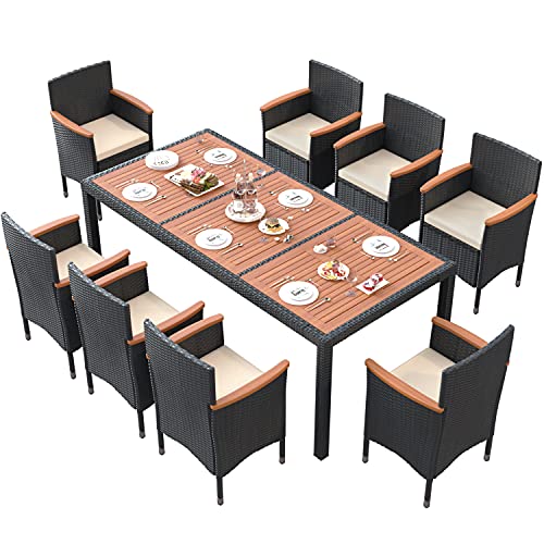 Click for More Images Sturdy and Durable: This 9 pc outdoor dining set is made from durable construction and is an all-weather product for all seasons and times. It’s a great choice for you to enjoy leisure time with your family.Free...