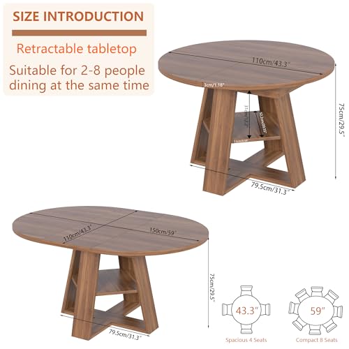 Click for More Images IDEAL for FAMILIES of 6-8:(Package Includes one Table) This extendable round dining table comfortably seats 4 to 8 people, making it perfect for family dinners, holiday feasts, and casual gatherings. A stylish centerpiece...