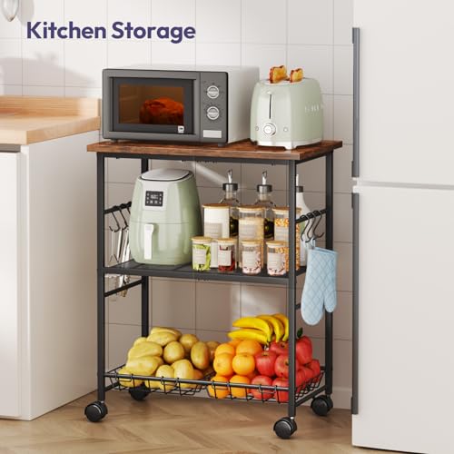 Click for More Images [Multifunctional Cart]: More than a kitchen cart, Use it as a: microwave cart, coffee cart, snack cart, rolling pantry storage cart, bar servicing cart, drink cart, bathroom cart, office printer stand, standing shelf for the...