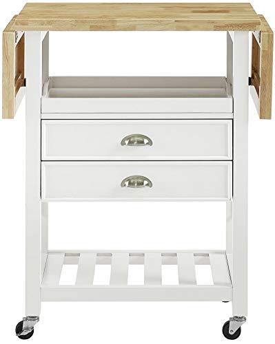 Click for More Images Two drop leaves double the counter space for food prep or serving spaceTwo full-extension storage drawers provide ample storage spaceOpen slatted shelf perfect for wine storageIncludes removable serving trayWhite finish with...