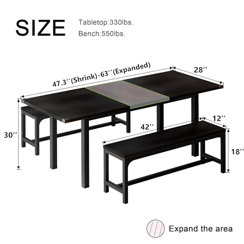 Click for More Images 7-Piece Dining Table Set: Table dimensions in inches: 63"L x 28"W x 30"H(extended) / 16"L x 12"W x 18"H (normal), stool: 42L x 12W x 18H. Weight capacity: table: 330lb, stool: 550lbExtendable Table for Small Space: The table...