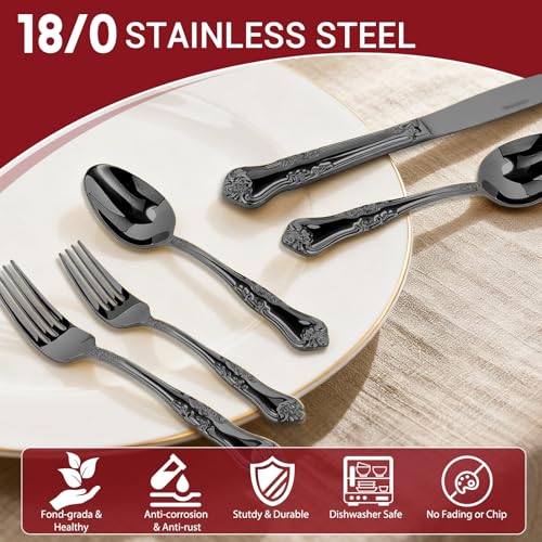 Click for More Images Heavy-Duty 18/0 Stainless Steel :Crafted from premium 18/0 stainless steel, this flatware set is highly resistant to rust, corrosion, and tarnishing. Built with a thick-gauge, heavy-duty construction, it retains its shape...