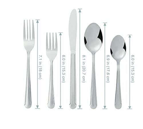 Click for More Images [40 Pieces Silverware Serve For 8] This 40 piece cutlery set includes 8 dinner forks, 8 salad forks, 8 dinner knives, 8 dinner spoons, 8 teaspoons, nice silverware for a family of 8 people or as a reserve for some to-hold...