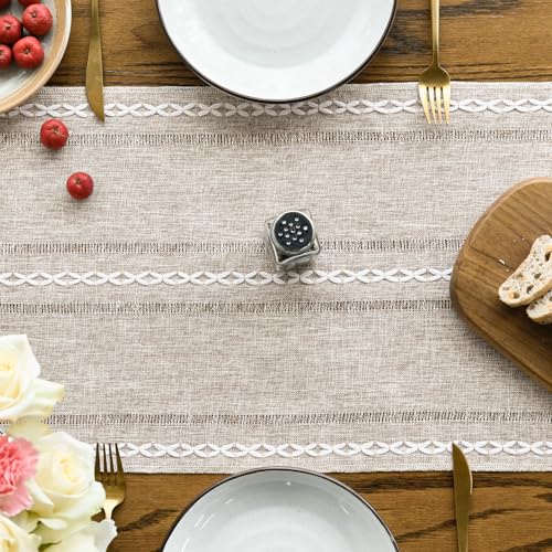Click for More Images Material: 100% linen fabric, no shrink, no fading.Suitable Size:13×90inch(33×228cm). Suitable for a table that can seat 4 to 6 people.Easy to Clean : Hand and machine washable, lay the table runner flat to dry.Perfect for...