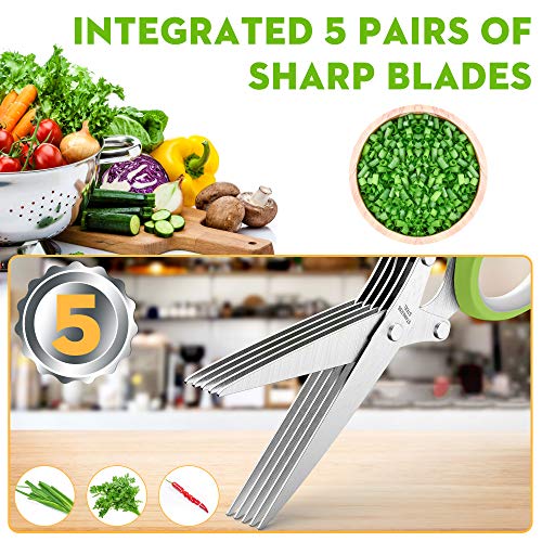 Click for More Images ? 2023 new high quality herb cutting scissors with 5 stainless steel blades.? The Herb Shear Set contains a safety cover and a comb for cleaning.? The five-blade design increase your productivity by four times.? The handle...