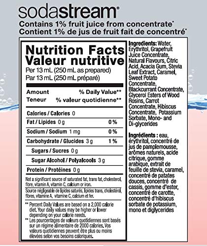 Click for More Images Naturally flavored and contains no caloriesNo sugars, aspartame or sucralose and no preservativesEach bottle makes 9 liters of flavored sparkling waterSimply carbonate water with your SodaStream machineCaffeine-free More...