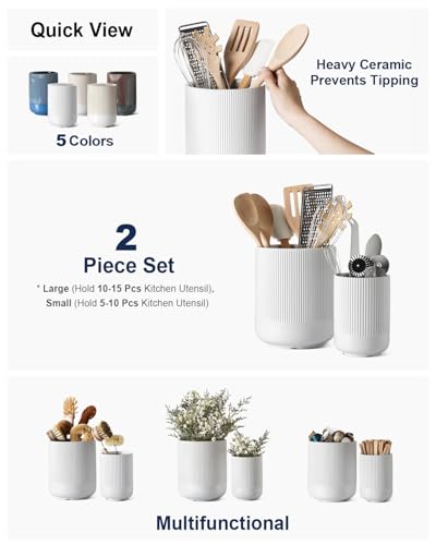 Click for More Images Thoughtfully Sized, Set of 2: Our utensil holder set includes 2 carefully proportioned holders for your kitchen accessories; The larger holder, measuring H7.3" x D6", is designed to comfortably store around 15 spatulas or...