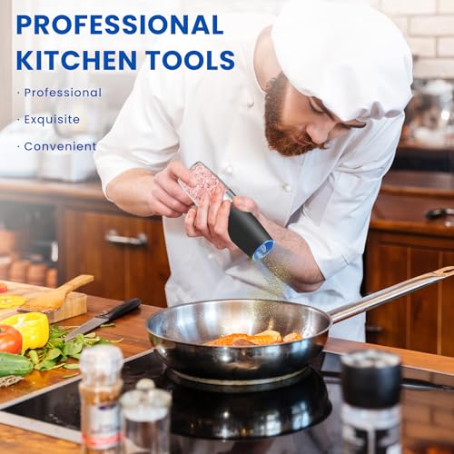 Click for More Images Consistent Excellence: The UNNEES battery operated salt and pepper grinder set, powered by an efficient motor and innovative design with 6 AAA batteries(not included), guarantees enduring and robust grinding, effortlessly...