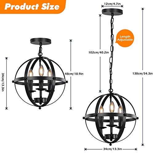 Click for More Images 3 Light industrial pendant lighting is retro industrial design with elegant black spherical shade, geometric aesthetic and exquisite.Rustic pendant light will add a classy look for kitchen, dining room, bar, amazing choice...