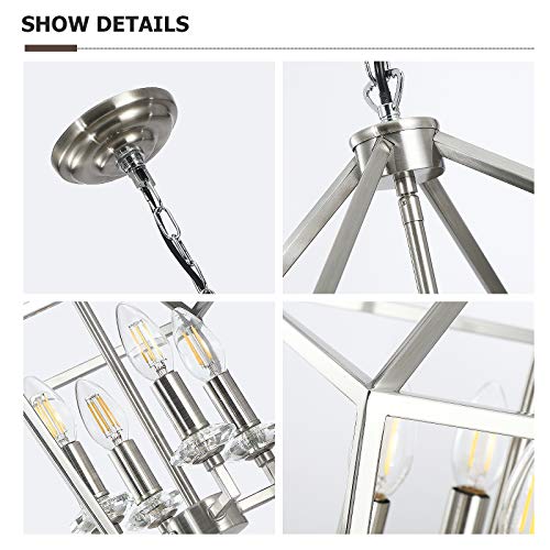Click for More Images * Lantern pendant light, made of iron lamp frame, crystal lamp base. Brushed Nickel finish geometric chandelier.* Dimension:15.7" (H) x11.8" (W) x 11.8" (L) Height adjustable ,Maximum hanging height: 62.5".* Easy...