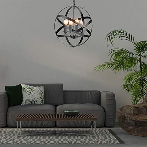 Click for More Images 4 Light industrial pendant lighting is retro industrial design with elegant black spherical shade, geometric aesthetic and exquisite.Rustic pendant light will add a classy look for kitchen, dining room, bar, amazing choice...