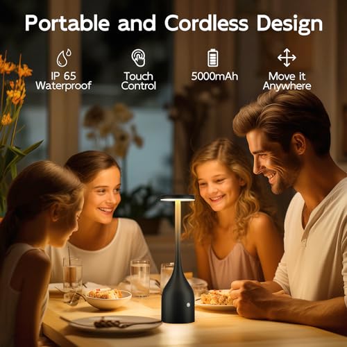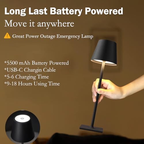Click for More Images Rechargeable Battery Powered Lamps: With a built-in 6000 mAh rechargeable battery, the rechargeable table lights can illuminate for 9 to 18 hours on a single charge. Using time depends on the brightness level you use.Lamp no...