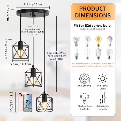Click for More Images Customizable Lighting for Your Home?Transform your space with our 3-light pendant lighting, designed to fit your lifestyle. Featuring adjustable cords, you can easily customize the height to match your ceiling, whether...
