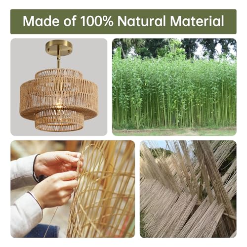 Click for More Images [BOHO CHIC] This Boho Rattan Chandelier is handwoven by skilled artisans. The light gently filters through the woven rattan, casting beautiful shadows and adding a touch of natural texture to your decor. Complemented by an...