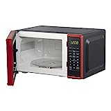 Click for More Images Upgrade your kitchen or break room 0.9 Cu Ft 900W Red Microwave. It features 10 power levels with one-touch cooking settings for popcorn, potato, reheat, frozen dinner, beverage and pizza. The digital microwave has a small...