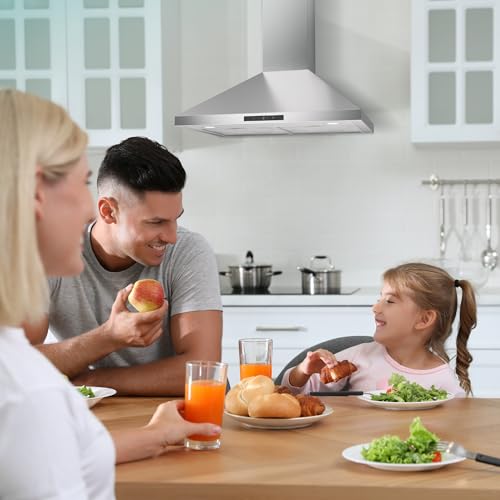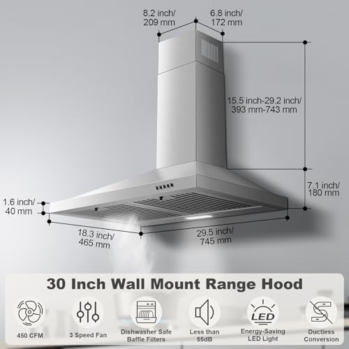 Click for More Images High Quality Range Hood: Made of the 430 grade 20-Gauge brushed stainless steel, this range hood 30 inch is heat resistance and corrosion resistance. Classic pyramid-shape design is suitable for a variety of kitchen...