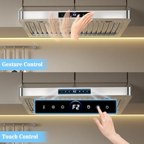 Click for More Images Touch & Gesture Control. This stylish and durable stainless steel under cabinet range hood combines modern elegance with smart features. The intuitive digital touchscreen allows for quick adjustments, and advanced gesture...