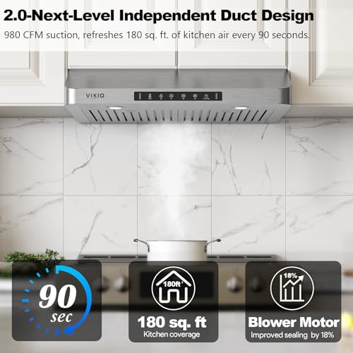 Click for More Images ? 700 CFM Vortex Suction Power for Quiet Operation ? Experience professional-grade ventilation with 700 CFM of peak power to quickly eliminate smoke, odors and grease. Despite the massive suction power, noise remains as low...