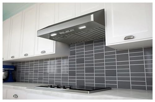Click for More Images WORK EFFICIENTLY: This range hood 30 inch has 3 speed exhaust fan and brand new motor will effectively removes smoke and odors,leave your kitchen cleaner and fresher.Space-saving slim profiles are great for condos and...
