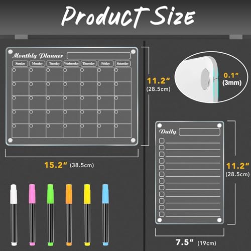 Click for More Images ?Magnetic Dry Erase Board Set?The material is transparent acrylic.Our package contains 4Pcs acrylic fridge magnetic dry erase board, a monthly calendar, a weekly planner, a dry erase calendar and a whiteboard, with extra 6...