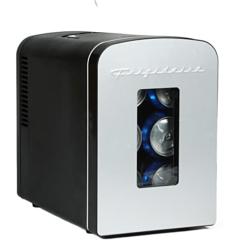 Click for More Images COMPACT & PORTABLE: Caynel cooler/warmer mini fridge chills 6 12oz. cans and is perfectly portable for personal use. It’s small size, sleek design and convenient carry handle, makes it easy to take the mini fridge with you...