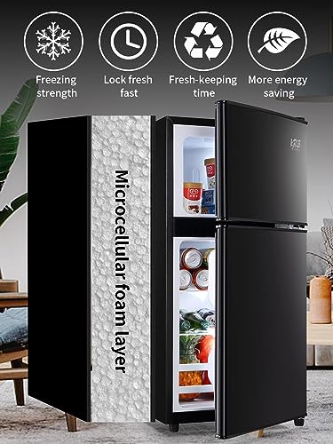 Click for More Images ???Stylish Double Door Mini Fridge?This Bodare 3.2 Cu.Ft mini compact fridge adopts a 2 doors design, with a freezer (0.7 Cu.Ft) above and a refrigerator (2.5 Cu.Ft) below, making their temperature don't interfere with each...