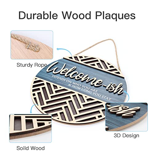 Click for More Images ? Funny Welcome Door Decor - 3D Welcome Hanging Sign Plaque "Welcome-ish depends on who you are & how long you stay" . The funny words will make your guests feel your humor and make a fun addition to your front door.?Great...