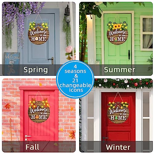 Click for More Images INTERCHANGEABLE DESIGN - With IDATOO Interchangeable Welcome Sign, you can add a touch of seasonal charm to your home all year round. This seasonal welcome sign comes with 4 interchangeable wreaths that capture the essence...