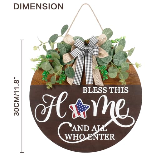 Click for More Images HOME DECOR: Our front door welcome sign features a circular wooden board with the words “BLESS THIS HOME AND ALL WHO ENTER”, paired with green plants, two styles of bow, and 14 interchangeable signs. It not only ensures...
