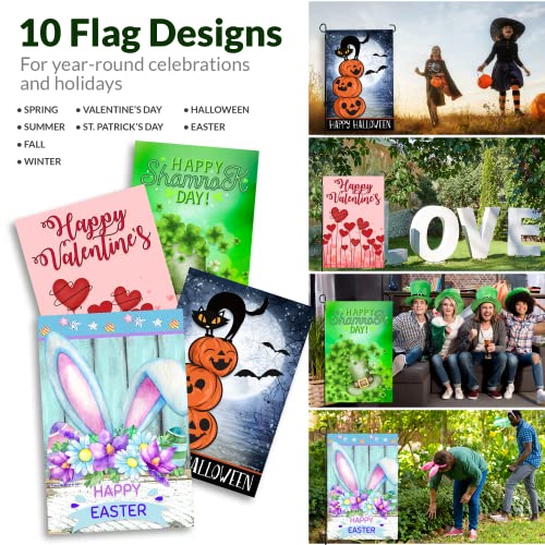 Click for More Images Display your style with our set of 10 decorative 12x18 inch flags for outside, perfect for adding a pop of color to your outdoor space.Welcome guests with our seasonal garden flags, featuring a variety of designs for every...