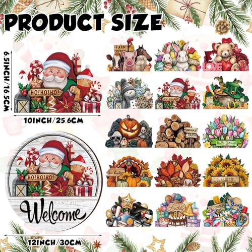 Click for More Images Abundant Seasonal Themes: the package consists of 16 stylish interchangeable seasonal and holiday welcome door sign themes that blend in with all year round decors; Choose from Spring, Summer, Autumn, Winter, Christmas,...