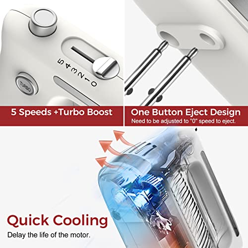 Click for More Images ?POWERFUL AND LIGHT WEIGHT?The hand mixer has a powerful and quiet all-pure copper motor, It’s lightweight housing with soft-touch handle, comfortable and secure grip while mixing.?PRECISE 5 SPEED ?5 Speeds and turbo...