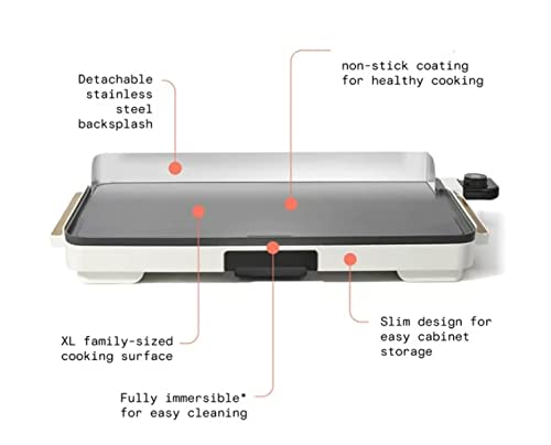 Click for More Images Beautiful 12" x 22" Extra Large Skillet with White Frosting, XL Family Size Cooking Station makes up to 15 pancakes or eggs at a time for the whole familyNon-stick coating Slim design for easy cabinet storage Removable...