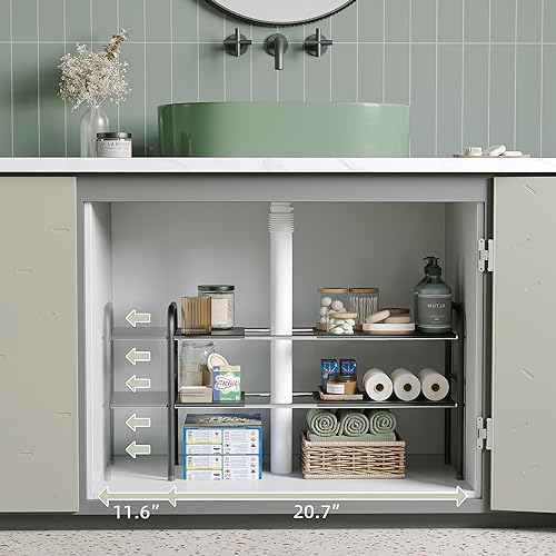 Click for More Images ?Purchase Note?: The minimum size of the telescopic under-sink shelf is 20.7 x 9.8 x 16.5 inches; the maximum size is 32.3 x 9.8 x 16.5 inches.?Length can be extended??Can be easily adjusted in length (from 20.7 inches to...