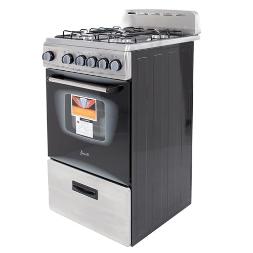 Click for More Images Automatic Electronic IgnitionFour Sealed Type Burners Rapid, Simi Rapid, and Simmer.Carton Dimensions: 40 H x 22 W x 26 D (Inches)LP Conversion Kit Included and see-thru glass oven door,oven cavity lightBroiling Pan...