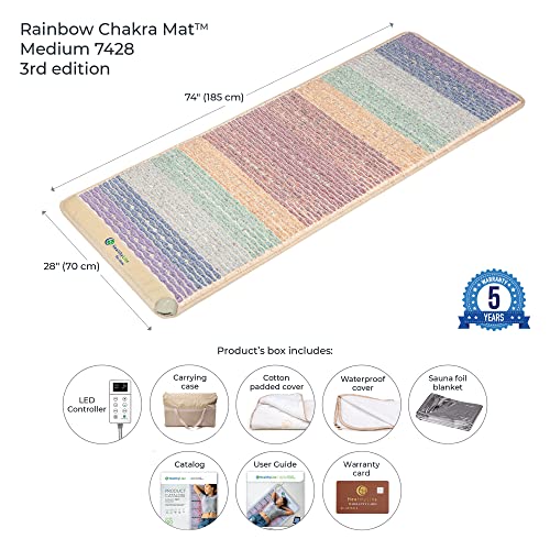 Click for More Images Channel unity and balance between your mind, body, and soul with the only chakra mat with 5 natural therapiesBenefit from 7 real natural gemstones and 7 color Photon Lights: amethyst, sodalite, blue lace agate, carnelian,...