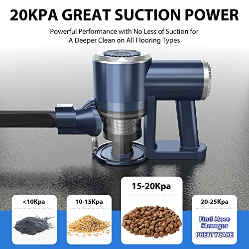 Click for More Images ?20Kpa SUCTION CAN EVEN SUCK UP YOUR PHONE?: PRETTYCARE stick vacuum cleaner cordless with 20000Pa Hurricane suction almost reaches the suction of a traditional canister vacuum. Eliminates dirt, debris, pet hair, and tough...