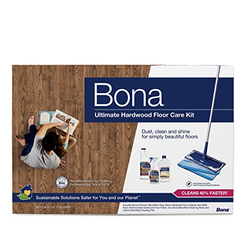 Click for More Images Durable 4 piece mop handle with extra-large mop headTwo Bona Microfiber Cleaning Pads - designed for effective cleaning with dual zone cleaning actionBona Microfiber Dusting Pad with electrostatic design traps dust, dirt and...