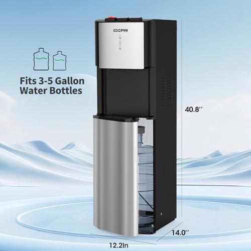 Click for More Images BOTTOM-LOADING WATER DISPENSER: Eliminate the hassle of lifting heavy water bottles with this bottom-loading water cooler dispenser. Designed to fit both 3- and 5-gallon bottles, it offers a convenient solution for your...
