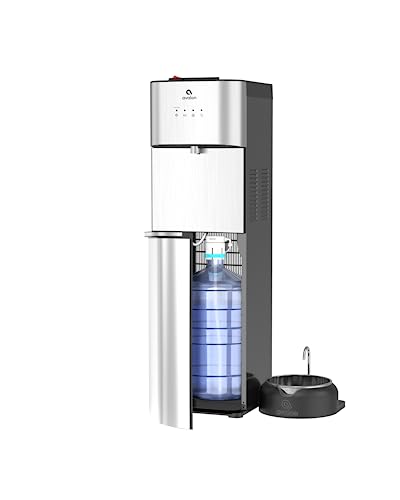 Click for More Images TOP-LOAD WATER COOLER: This water cooler dispenser loads from the top & allows you to spot if the dispenser is running out of water, which is a great feature for office settings. The cabinet fits either a 3- or 5-gallon jug...