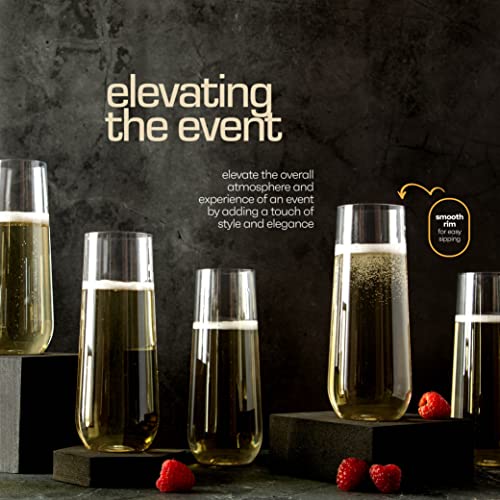 Click for More Images Preimum Champagne Flutes - Made of Heavy Duty, Shatterproof, BPA-free PET plastic, ensuring that they are Durable & Sturdy. Our disposable champagne glasses are reusable making them an Eco-friendly choice for hosting events....