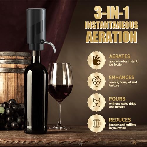 Click for More Images ?QUICKLY AND PERFECTLY AERATE WINE? Saving you valuable time - One second, our electric wine aerator delivers fully aerated wine with enhanced flavors. No more waiting for over 20 minutes!?EASY TO USE AND MAINTENANCE?...