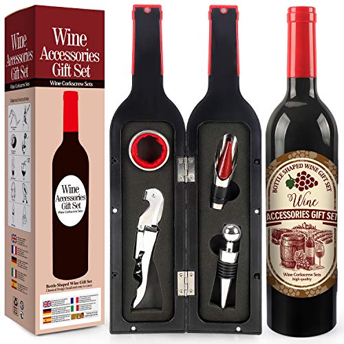 Click for More Images Best Wine Gift Sets: Wine Decanter Set with More Wine Accessories,like Drying Stand,Wine Stopper, Cleaning Brush and Beads, Wine pourer and cork.The wine decanter set can meet your various needs.It fits in with any wine and...